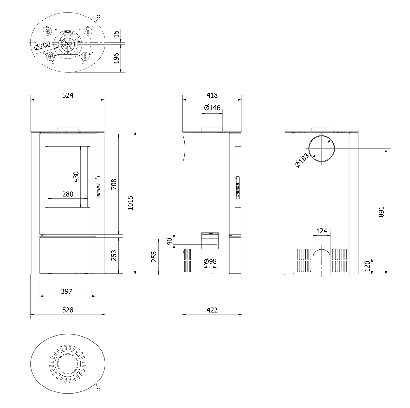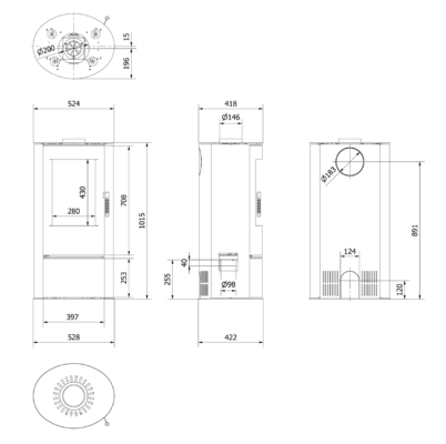 Model LOKI PF – výkon 5,5 kW, kouřovod ø 150 mm