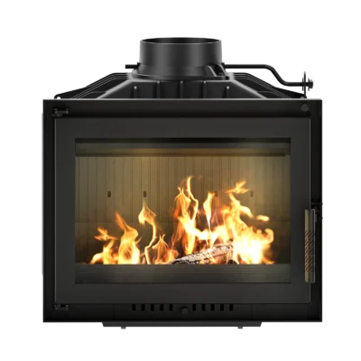 Dominantou vložky je velké čelní prosklení dvířek, které poskytuje příjemný pohled na plameny a vytváří útulnou atmosféru v obytném prostoru. Integrovaný systém proudění vzduchu pomáhá udržovat sklo déle čisté, takže si můžete dlouhodobě užívat ničím nerušený pohled do ohniště.